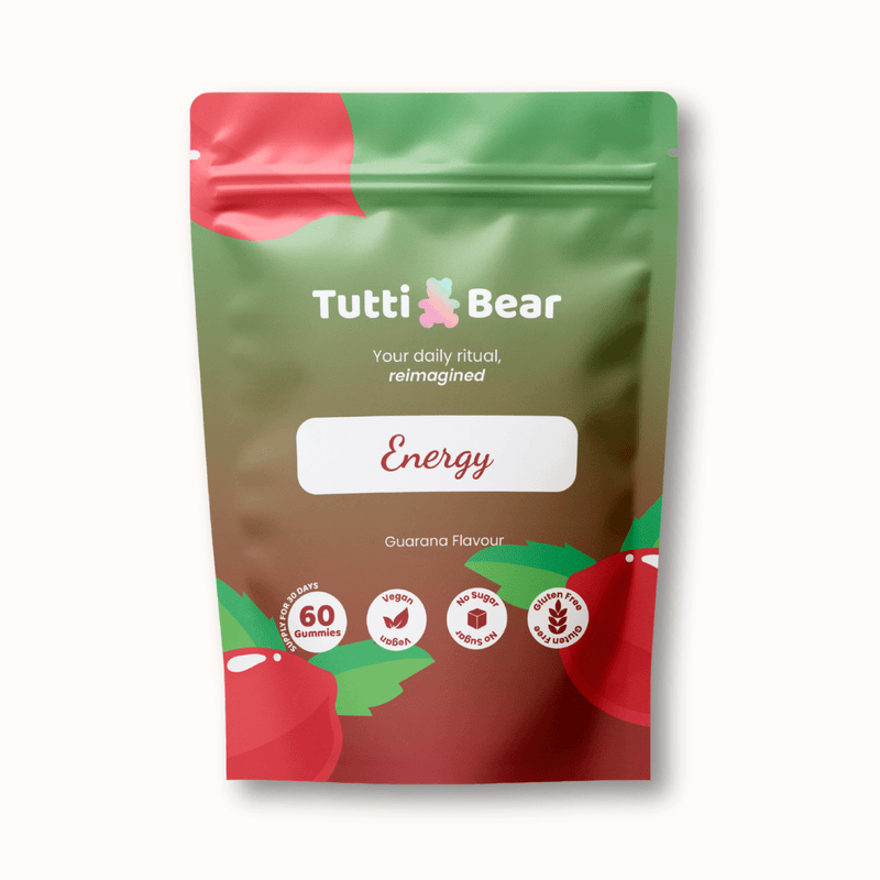 Introducing TuttiBear Energy Gummies—your daily spark of vitality. We have combined the natural, sustained power of Guarana with a sophisticated Nootropic blend of L-Theanine, L-Tyrosine, and Vitamin B12. The result? A delicious, sugar-free Guarana gummy that lifts your energy levels, sharpens your focus, and keeps you productive without the jitters.