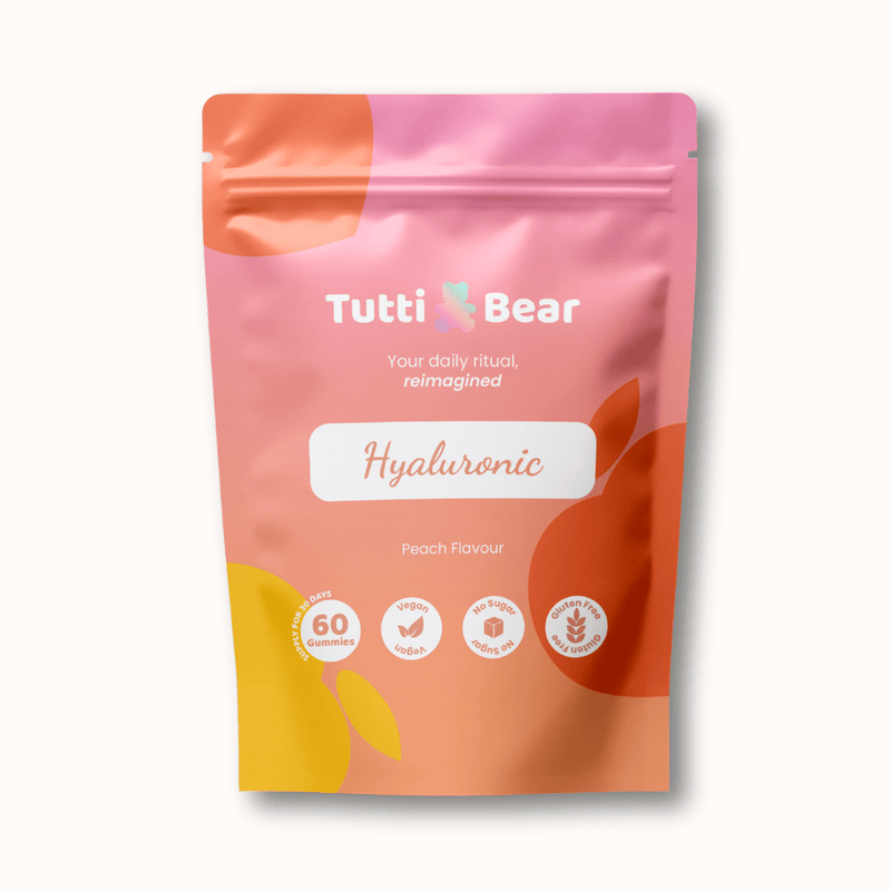 Introducing TuttiBear Hyaluronic Acid Gummies—your daily dose of deep hydration. We have captured the moisture-binding power of high-quality Hyaluronic Acid and infused it into a delicious, sugar-free Peach gummy. Enriched with Vitamin C and B3, this formula is designed to quench your skin's thirst from the inside out, smoothing fine lines and restoring your natural radiance.
